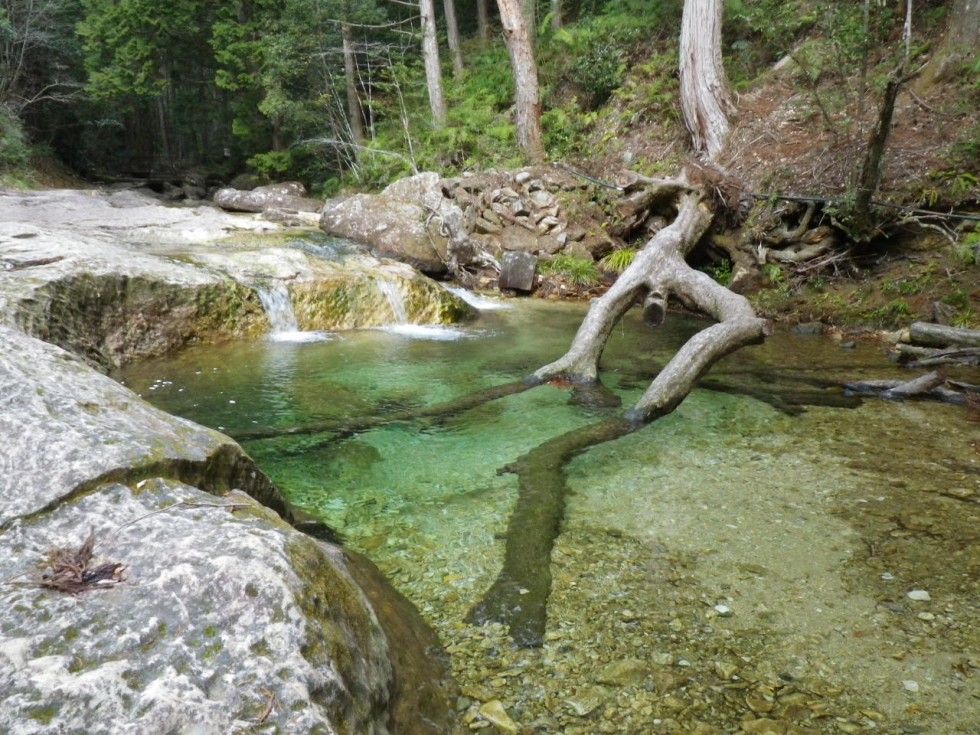 老朽化していた汲取式トイレを改修し、観光イメージアップを図りたい新城市が水洗式トイレを設置しました。上水がなく、清流(左写真の3枚目)に面する立地条件だったのでソフィール循環利用が採用されました。この現場は岩盤であったため、岩掘削に相当の時間を要しました。また、観光客が歩行しやすいように土系舗装で土壌浸潤槽の表面を仕上げました(左写真の2枚目)。