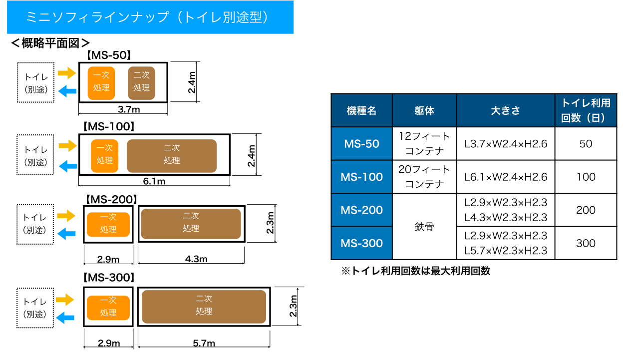 現場の設計条件に応じたカスタムメイド設計が可能です。例えば、下記のイラストようなトイレ別途のタイプにも対応可能です。